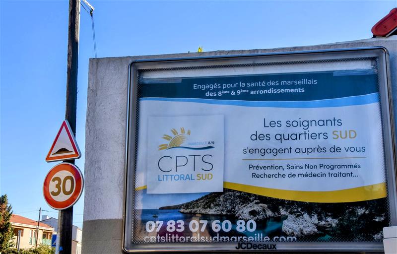 "Malgré plusieurs années d’existence, très peu de personnes, en dehors du monde de la santé, savent ce qu’est une CPTS", déplore Maude Duplain, coordinatrice de la CPTS Littoral Sud (Paca). Et à son avis, c’est une aberration : "Nous sommes financés par l’Assurance maladie pour mener des actions concrètes sur un territoire donné, mais nous ne sommes pas capables d’être reconnus par les usagers..." Pour y remédier, l’organisation territoriale a décidé d’employer les grands moyens : six affiches grand format ont été collées le long d’axes routiers très fréquentés.