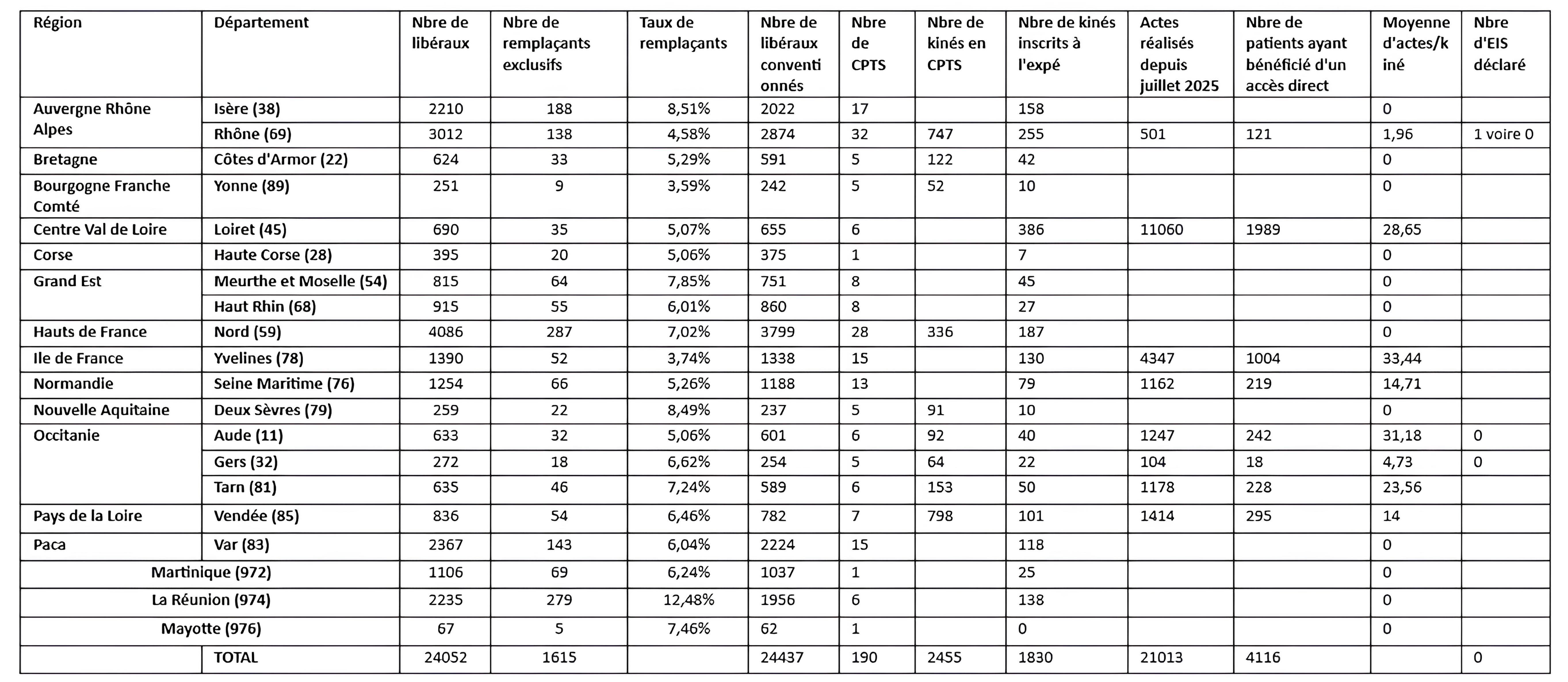 En expérimentation dans 20 départements, l'accès direct aux kinés en CPTS a encore du mal à être déployé dans l'ensemble des territoires. C'est ce que révèle un bilan réalisé par l'Ordre national des masseurs-kinésithérapeutes. Au 1er avril 2026, 1.830 kinés expérimentateurs et quelque 21.000 actes étaient recensés.